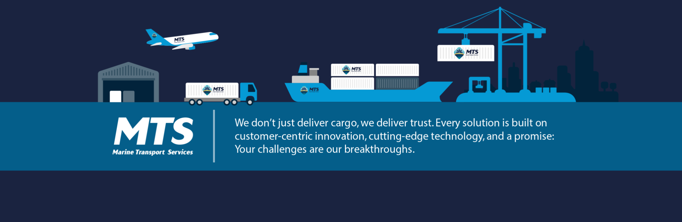 With decades of expertise and a dedicated team of over fifty top-drawer professionals, Marine Transport Services (PVT) LTD delivers seamless, end-to-end logistics solutions bespoke to your needs. Evolving across multiple verticals over the years, MTS has redefined logistics with cutting-edge solutions that ensure efficiency and reliability, across Oceans, Skies, and Roads—Simplifying Global Trade.